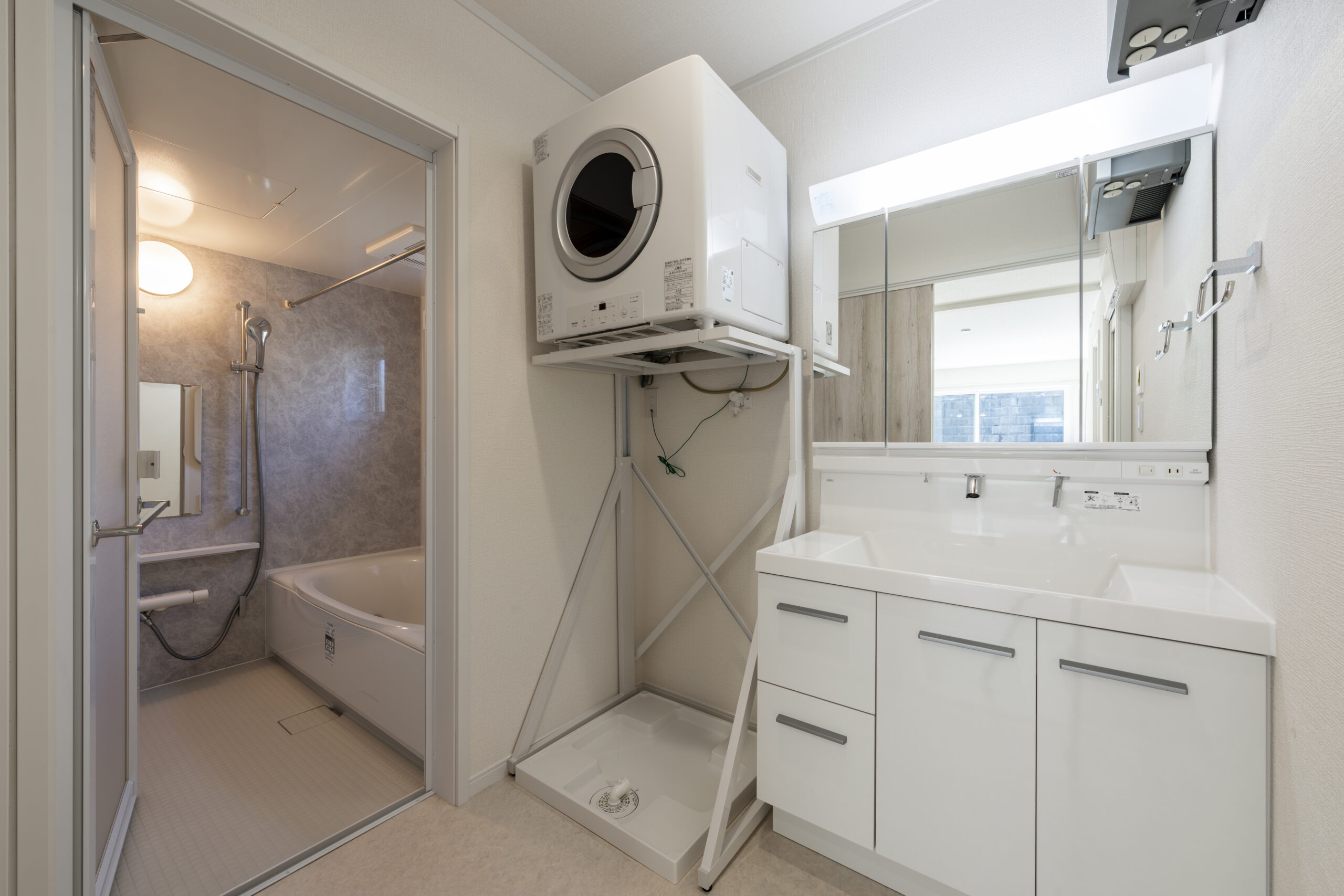 雨の日も安心なガス衣類乾燥機「乾太くん」を設置。洗う・乾かすがスムーズに完結する動線設計です。
